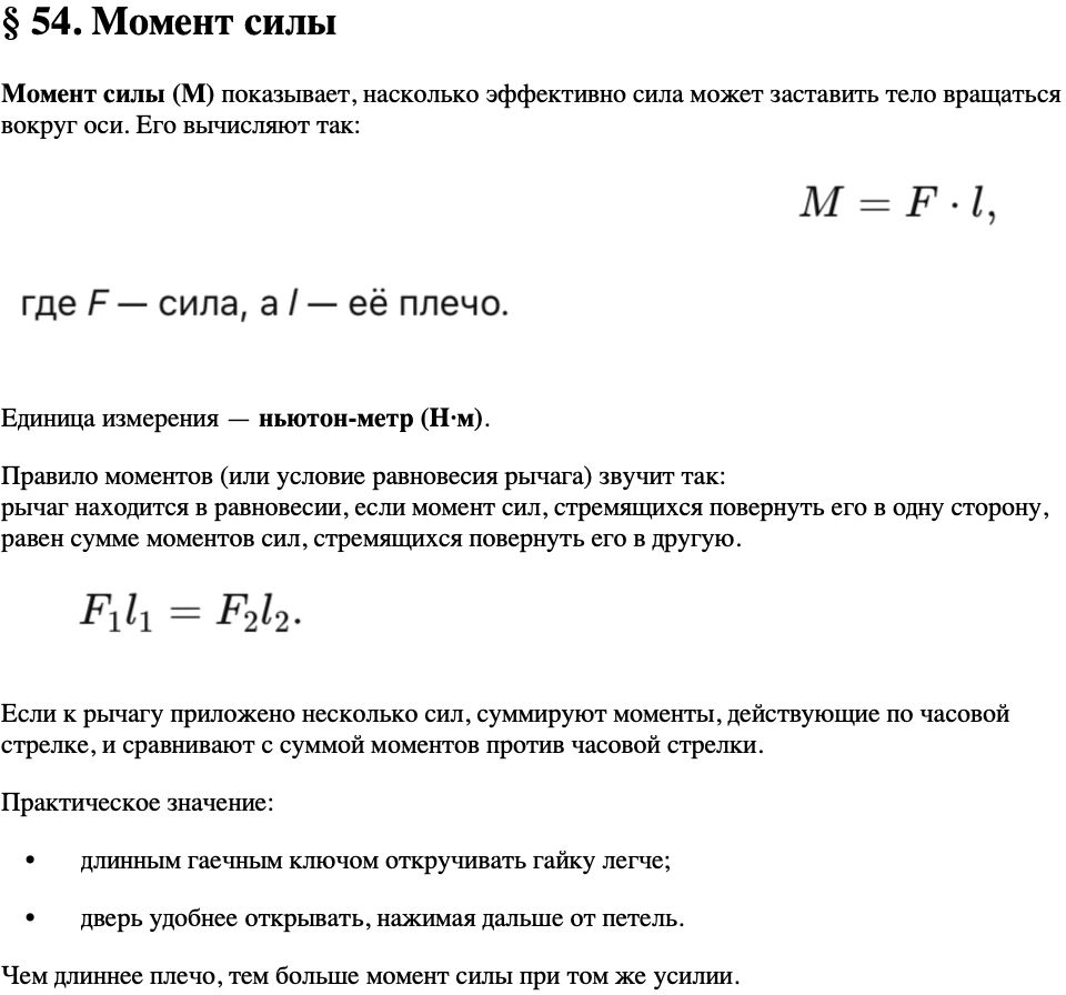 Краткое содержание параграф 54 учебник по физике Перышкин, Иванов 7 класс Навигация по записям ← Предыдущий ответСледующий ответ → § 54. Момент силы Навигация по записям ← Предыдущий ответСледующий ответ → Перейти к выбору задания