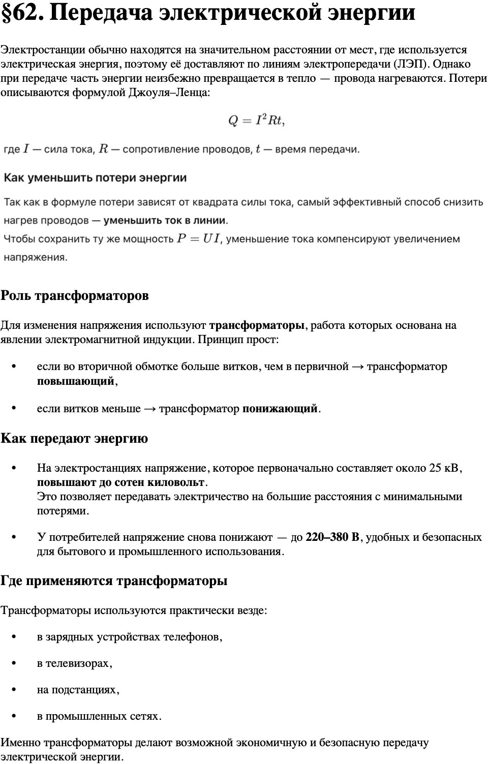 Краткое содержание параграф 62 учебник по физике Перышкин, Иванов 8 класс Навигация по записям ← Предыдущий ответ §62. Передача электрической энергии Навигация по записям ← Предыдущий ответ Перейти к выбору задания