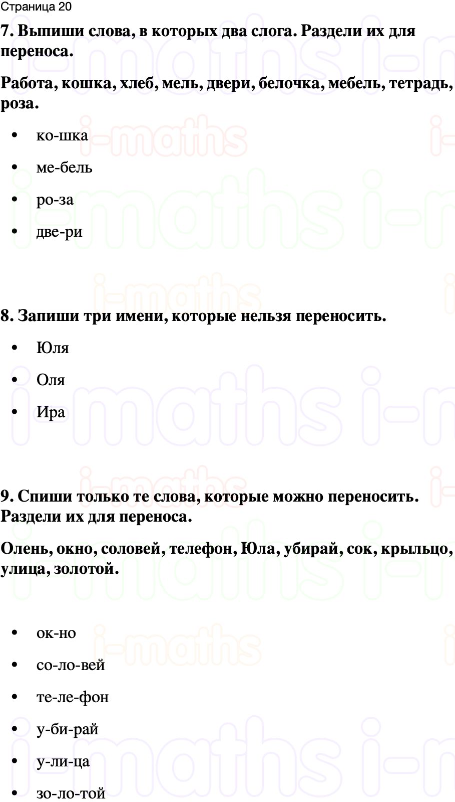 9. Спиши только те слова, которые можно переносить. Раздели их для переноса.