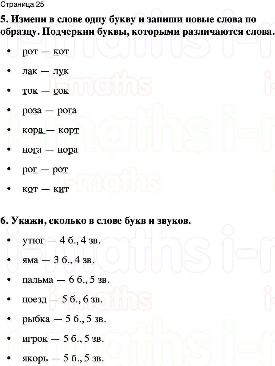 5. Измени в слове одну букву и запиши новые слова по образцу. Подчеркни буквы, которыми различаются слова.