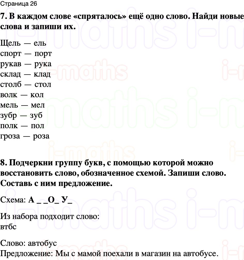 7. В каждом слове «спряталось» ещё одно слово. Найди новые слова и запиши их.