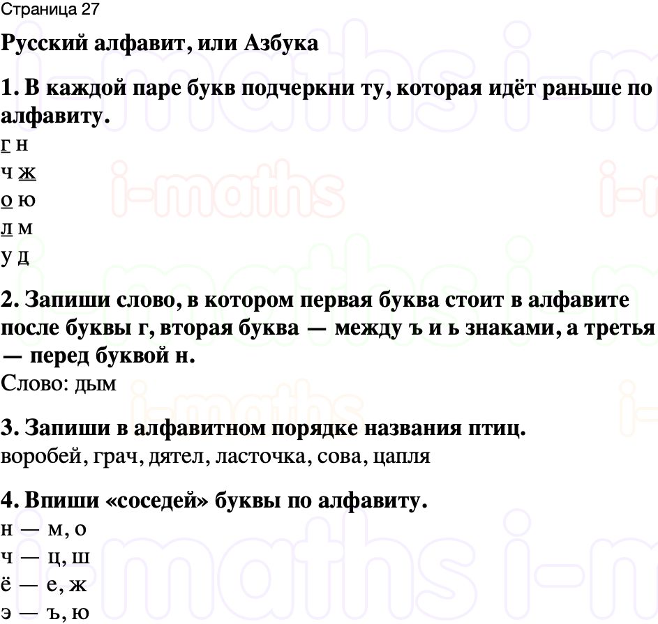 1. В каждой паре букв подчеркни ту, которая идёт раньше по алфавиту.