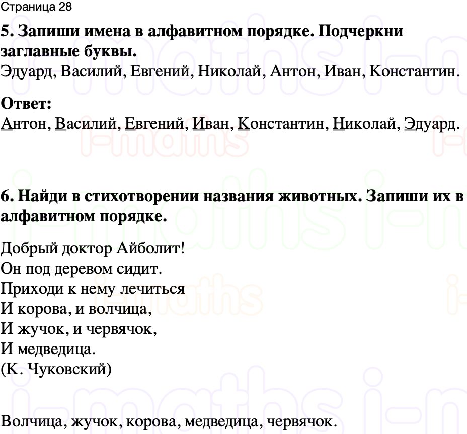 5. Запиши имена в алфавитном порядке. Подчеркни заглавные буквы.