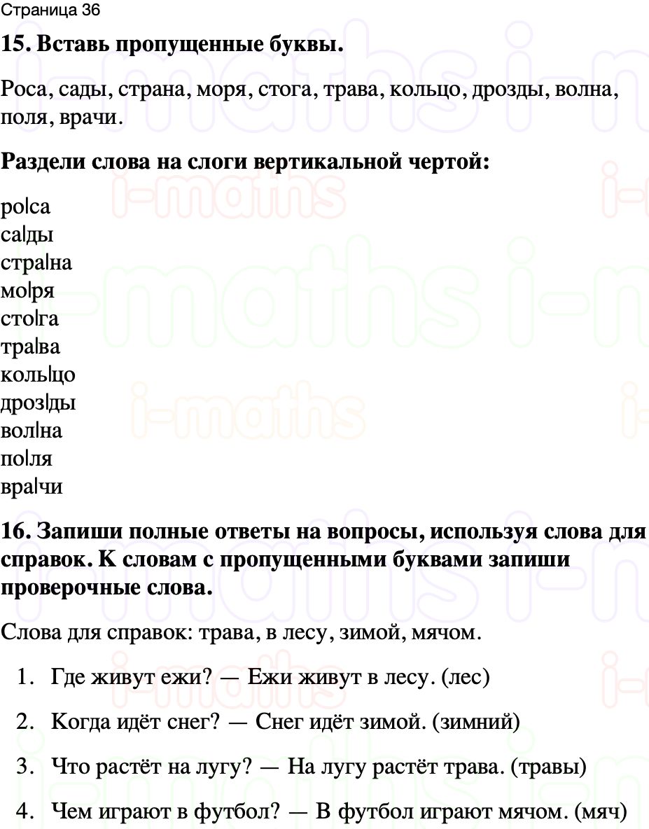 16. Запиши полные ответы на вопросы, используя слова для справок. К словам с пропущенными буквами запиши проверочные слова.