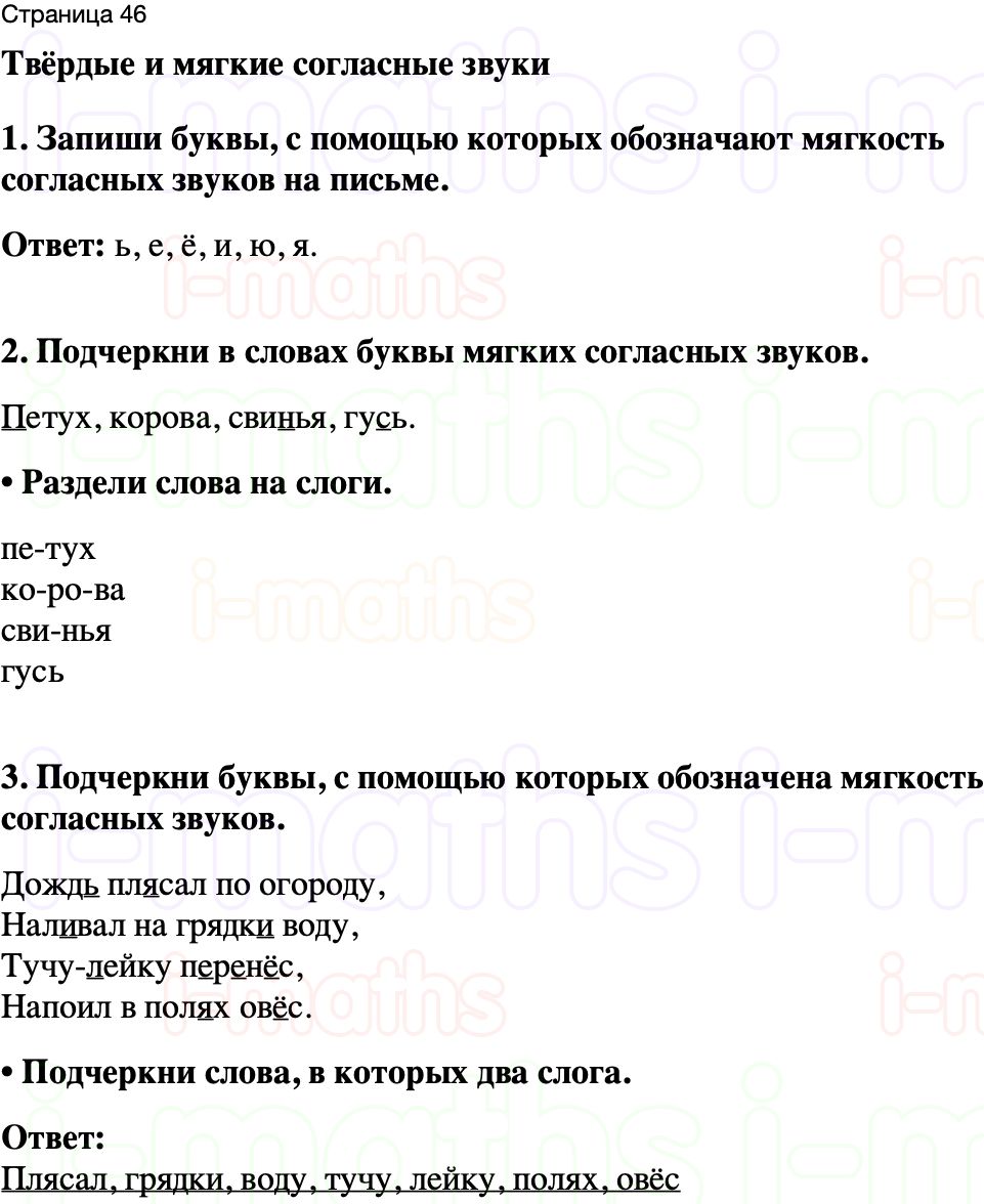3. Подчеркни буквы, с помощью которых обозначена мягкость согласных звуков.