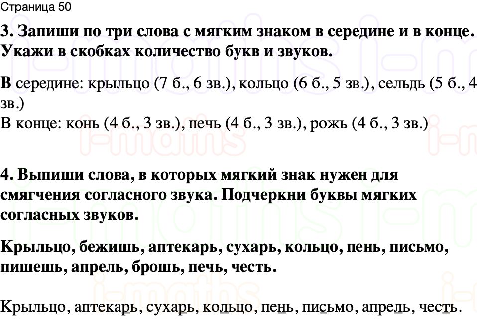 4. Выпиши слова, в которых мягкий знак нужен для смягчения согласного звука. Подчеркни буквы мягких согласных звуков.