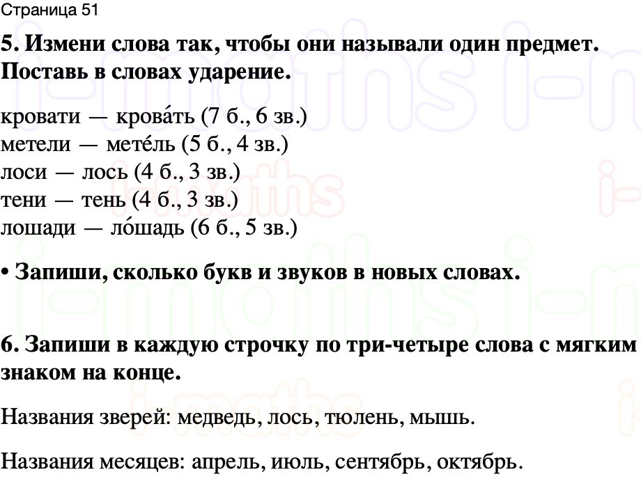 5. Измени слова так, чтобы они называли один предмет. Поставь в словах ударение.