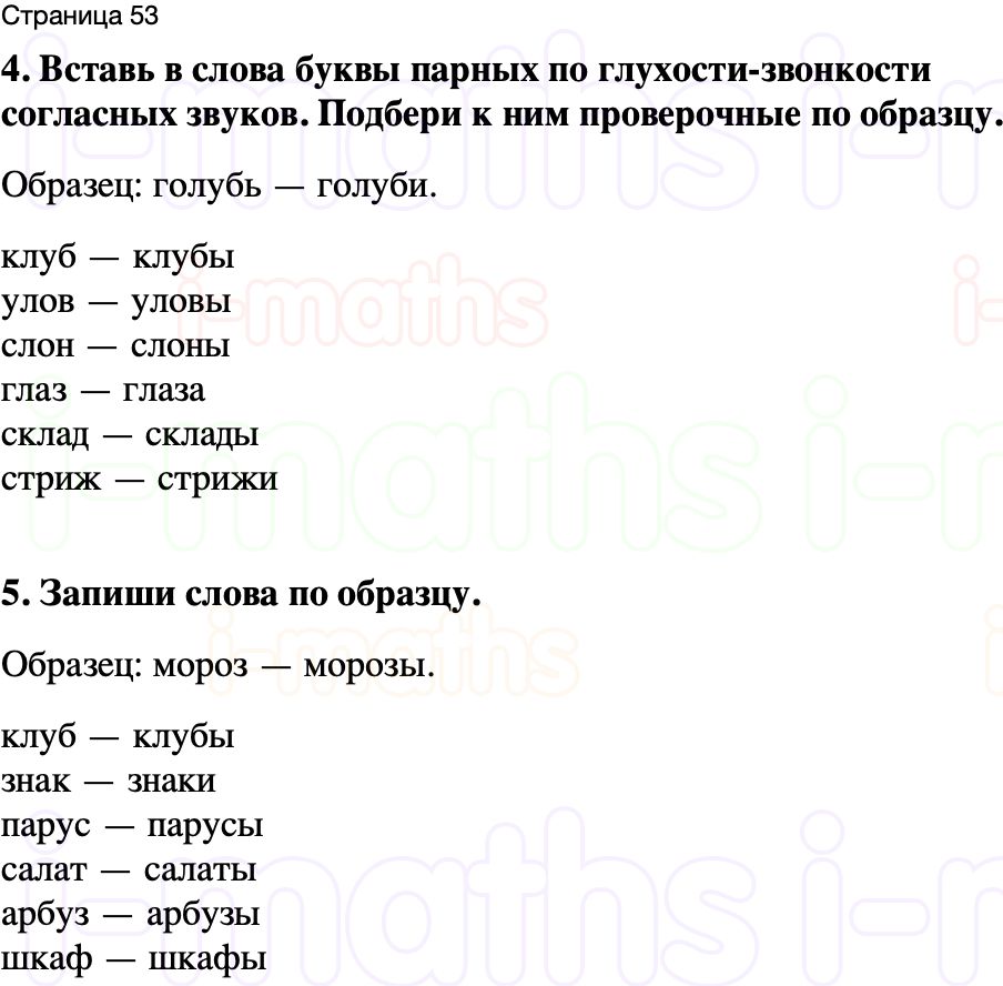 4. Вставь в слова буквы парных по глухости-звонкости согласных звуков. Подбери к ним проверочные по образцу.