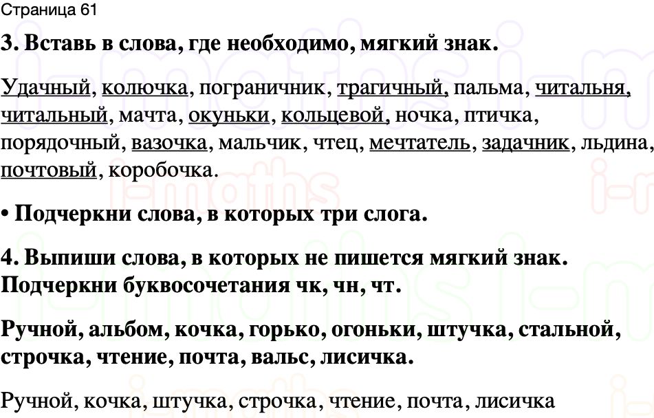 4. Выпиши слова, в которых не пишется мягкий знак. Подчеркни буквосочетания чк, чн, чт.