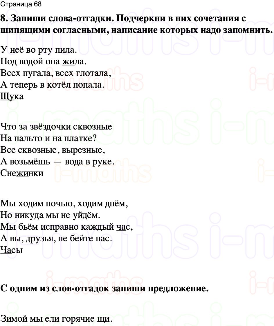 8. Запиши слова-отгадки. Подчеркни в них сочетания с шипящими согласными, написание которых надо запомнить.