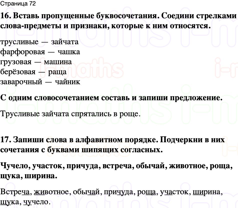 16. Вставь пропущенные буквосочетания. Соедини стрелками слова-предметы и признаки, которые к ним относятся.