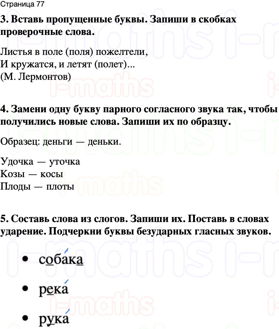 5. Составь слова из слогов. Запиши их. Поставь в словах ударение. Подчеркни буквы безударных гласных звуков.